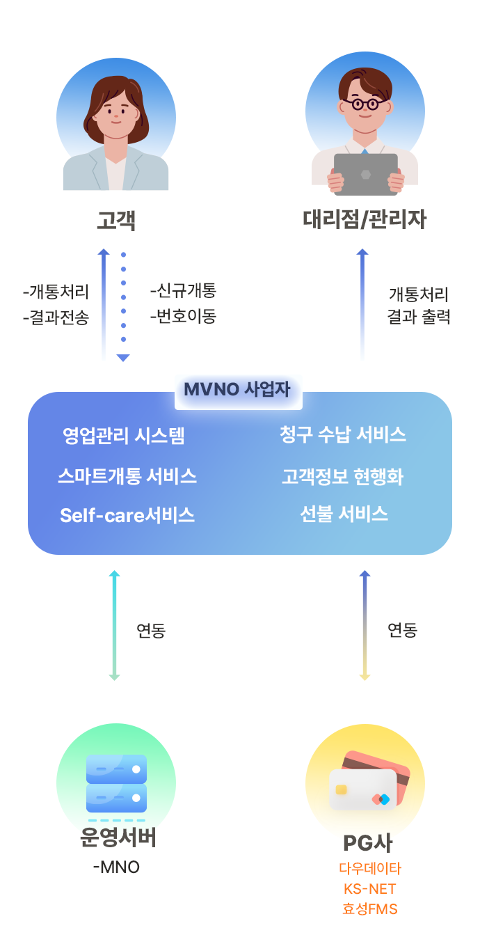 MNO(SKT,KT,LGU+) 전산 시스템과 유기적인 전산 연동으로